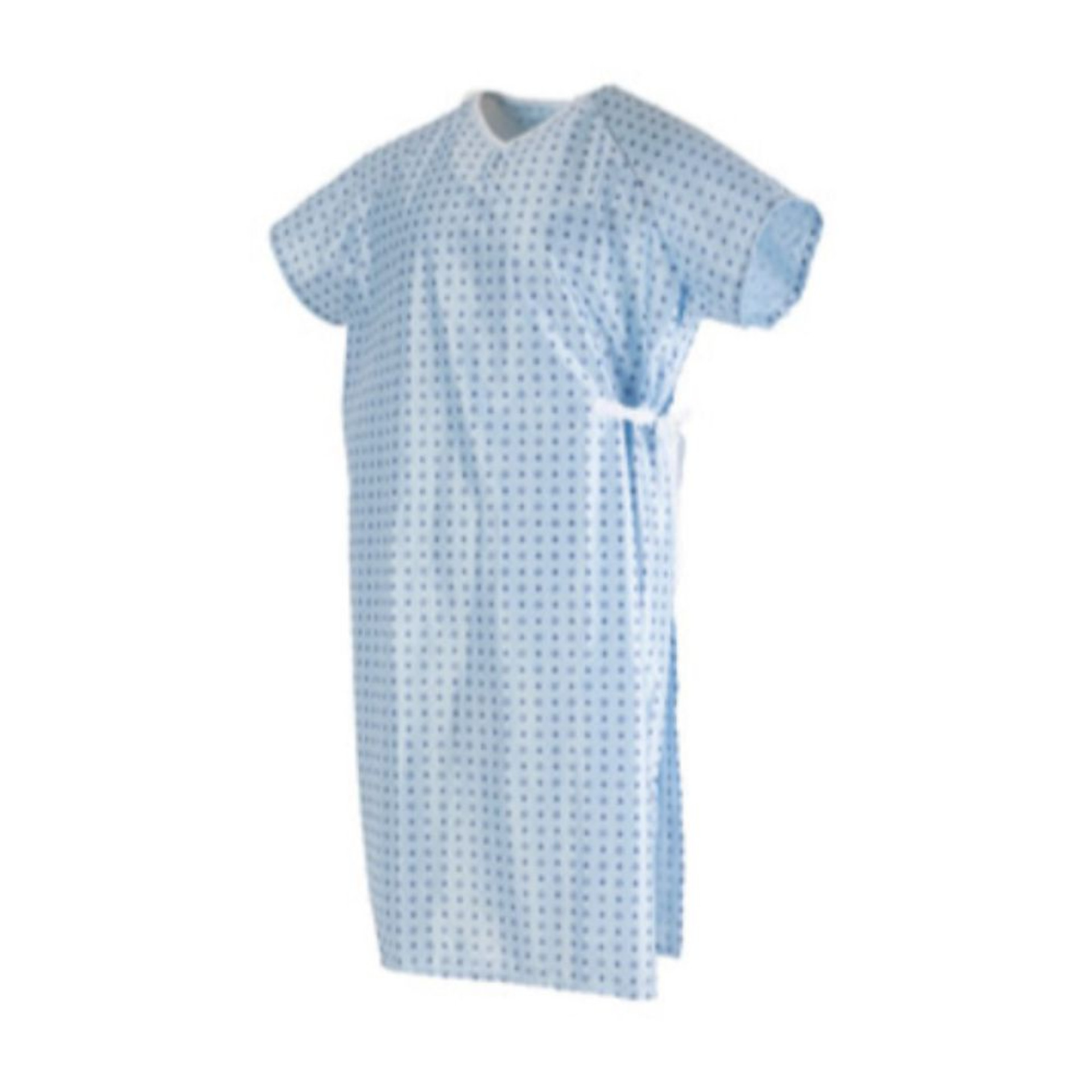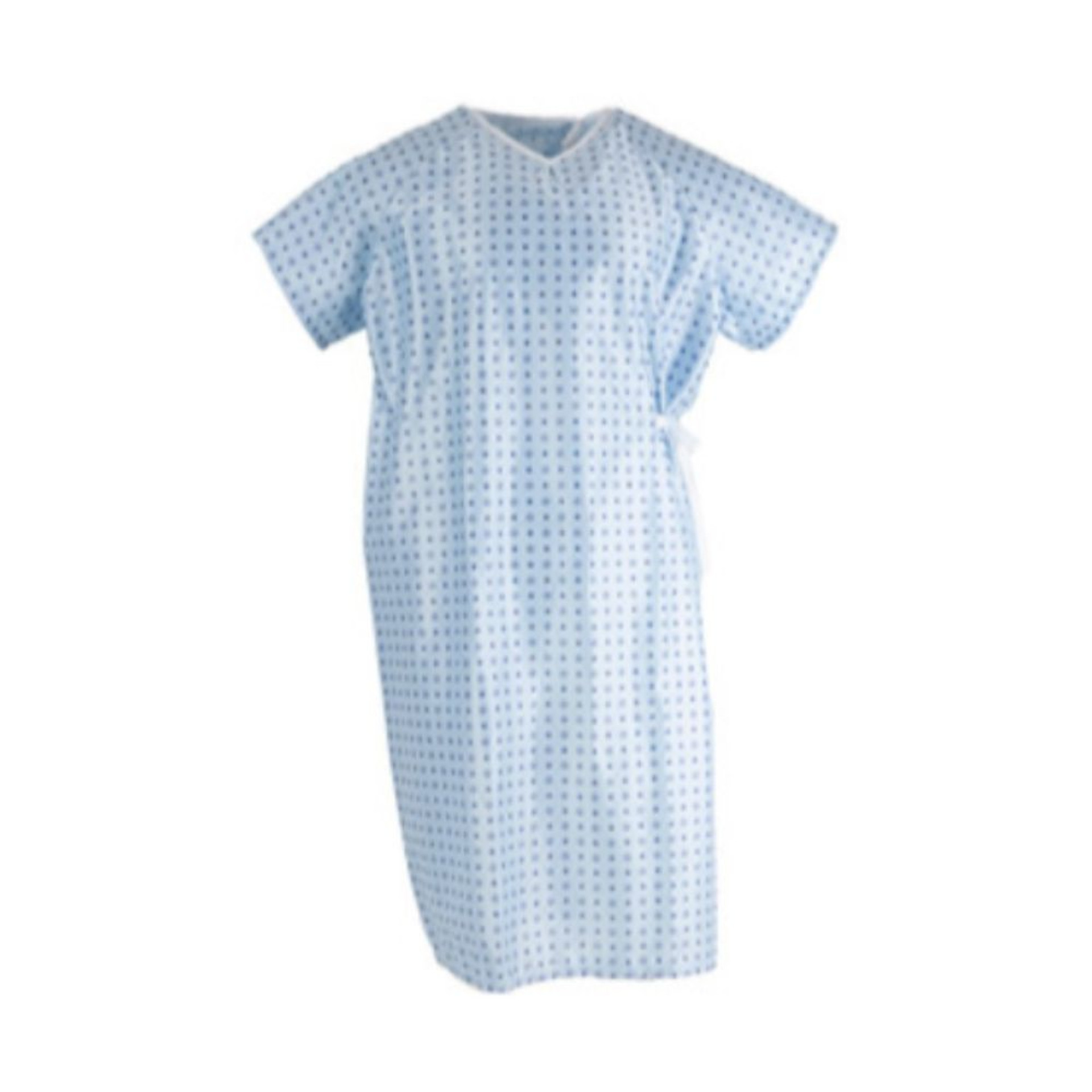 Batas camisón de paciente, con apertura por detrás y cierre con cintas